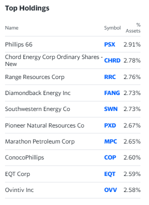 XOP ETF์ ๊ตฌ์ฑ ์ข ๋ชฉ